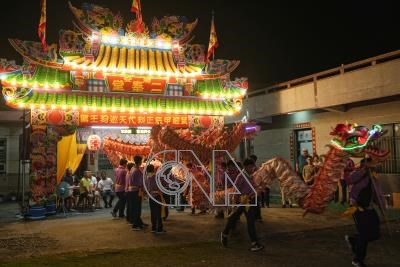 屏東縣南州鄉同安北極殿神龍隊10日晚間走遍同安村大街小巷,並在多戶人家、私壇及宮廟演出。