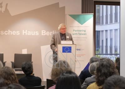 第3屆柏林台灣研討會5日在德國柏林登場,本屆主題為「與台灣合作」。台德民間論壇聯合主席包瑞翰(台上講者)出席致詞。