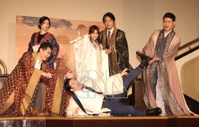 音樂劇「妃比尋常笑」6日於記者會率先亮相精彩片段,由台北市立國樂團、全民大劇團聯手製作,帶給觀眾古裝音樂劇全新體驗,演出結束所有演員在台上搞笑合影。