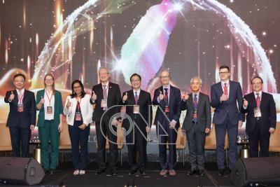 法務部廉政署9日在台北舉行「2024年第2屆透明晶質獎頒獎典禮暨台灣透明論壇」,法務部長鄭銘謙(中)、外交部次長吳志中(左4)、廉政署長馮成(左)和參與論壇的國際透明組織成員合影留念。