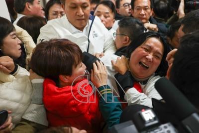 立法院內政委員會16日再度排審選罷法修正草案,為阻擋民進黨立委進入會議室,國民黨立委陳玉珍(前右)與民進黨立委陳亭妃(紅衣)在會議室外爆發推擠衝突。