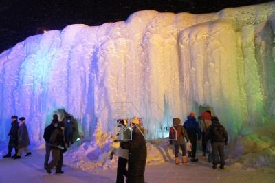 「層雲峽溫泉冰瀑祭」是日本北海道代表性的大規模冰祭,在廣闊的會場中可見大大小小各式冰雕、冰雪建築,遊客可盡情體驗冰之王國風情,入夜後則會點亮七彩燈光,營造如夢似幻的空間。