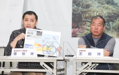 「潛水教練挺四接記者會」25日在台北舉行,潛水教練王銘祥(右)、張柏祥(左)等人出席,說明立場與訴求。