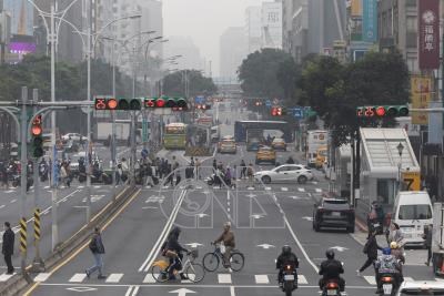 氣象專家吳德榮表示,2月28日起至3月3日台灣在暖氣團內,各地晴朗穩定,清晨易起霧,白天「溫暖如夏」,本島各地區最高氣溫皆將升至攝氏30度以上。圖為27日台北市區街景。
