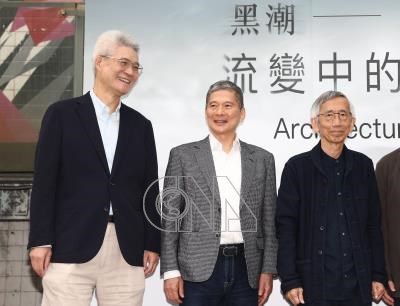 紀錄片「黑潮-流變中的台灣建築」特映會3日在台北光點華山電影院舉行,中央社董事長李永得(中)、公視基金會董事長胡元輝(左)與編劇郭肇立(右)出席。
