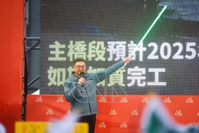 民進黨30日下午在新北板橋第二運動場舉行「人民是頭家」政策宣講會,行政院長卓榮泰(圖)壓軸登場開講,手持光劍細數政績。