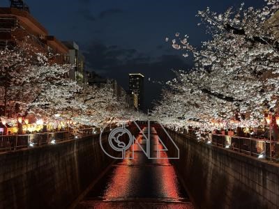 日本東京31日氣溫驟降至攝氏個位數,想要賞夜櫻的旅客要特別注意保暖。圖為東京著名賞櫻景點目黑川的夜櫻。