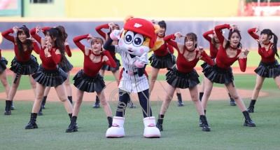 中華職棒味全龍隊3日在天母棒球場出賽,專屬啦啦隊Dragon Beauties小龍女(圖)全員到齊賣力應援,賽前跳開場舞炒熱現場氣氛。