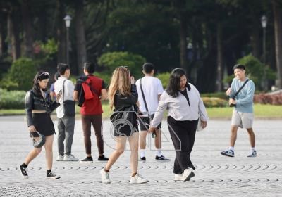 中央氣象署表示,8日北部白天氣溫明顯回升,西半部高溫可以來到攝氏27至29度,東半部約24至26度,各地普遍舒適、溫暖。圖為台北市天氣晴朗,民眾前往中正紀念堂。