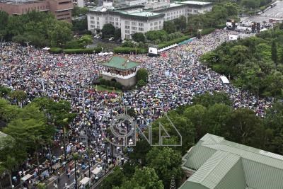 國民黨26日下午在台北凱達格蘭大道舉辦「反綠共、戰獨裁 凱道一起站出來!」集會活動,現場參與人潮多到擠滿景福門圓環。
