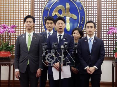 日本自民黨青年局長、眾議員中曾根康隆(前中)率團訪台,2日傍晚在外交部接受媒體聯訪指出,日本和台灣都是島國,守護和運用海洋相當重要,在能源、糧食等經濟安全領域中的海上連結,都需要進一步強化合作。