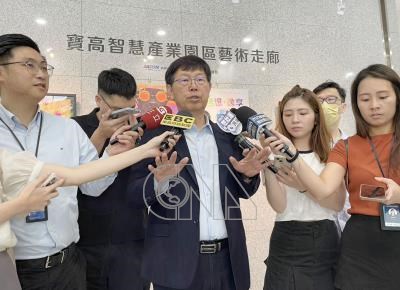 鴻華先進23日上午舉行股東會,董事長劉揚偉(中)會後接受媒體採訪。 中央社記者鍾榮峰攝 114年5月23日