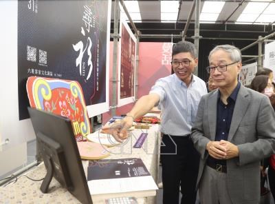 國立台灣工藝研究發展中心28日在台灣當代文化實驗場舉辦2025台灣工藝季啟動記者會,文化部長李遠(前右)現場參觀展區,感受工藝之美。