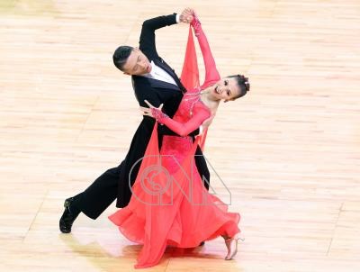 2025雙北世壯運28日在台北小巨蛋進行運動舞蹈項目壯年二級A組標準舞賽事,台灣組合劉秉澤(左)、李秀滿(右)拿下銅牌。