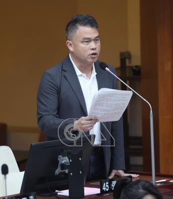 台北市議會6日下午持續進行市政總質詢,民眾黨籍議員張志豪(圖)針對多項市政議題質詢台北市長蔣萬安與市府局處首長。