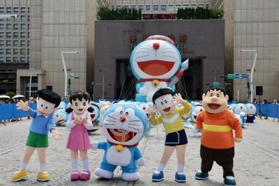 「100%哆啦A夢&FRIENDS巡迴特展 台北站」28日將在華山1914文化創意產業園區登場,14日在台北市市民廣場搶先舉辦快閃活動,哆啦A夢、大雄、靜香、胖虎與小夫也驚喜同框現身。