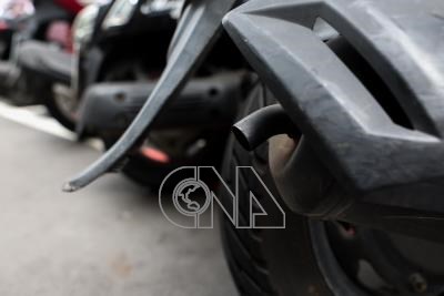 環境部自2023年10月起與台灣大學合作,在台北市交通流量密集地點設置空氣品質監測站,觀測粒狀污染物(如PM0.1)、氣狀污染物等,並將在2026年起,於台中市及高雄市的部分空氣品質監測站,進行PM0.1試驗性監測。圖為機車排氣管。