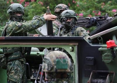 國軍「漢光41號」演習實兵操演12日進入第4天,演練進程進入備戰部署階段。陸軍關渡地區指揮部CM23迫砲車進駐新北市忠烈祠,砲口射界涵蓋淡水河流域,官兵在帶隊幹部指揮下,熟悉81公厘迫擊砲操作流程。