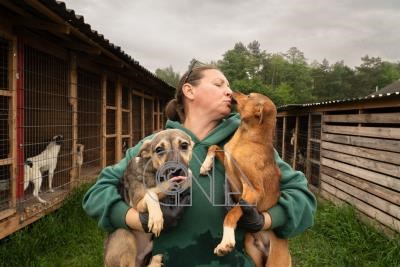 烏克蘭動物志工彼得羅娃與小狗相擁