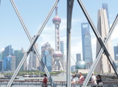 中國2025年第2季經濟成長率5.2%,遜於第1季表現為5.4%。圖為上海地標東方明珠電視塔。
