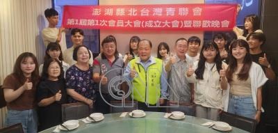 澎湖縣北台灣青聯會成立大會19日舉行,澎湖縣長陳光復(前排右4)、國民黨澎湖縣黨部主委陳雙全(前排右5)等出席合影。中央社 114年7月20日