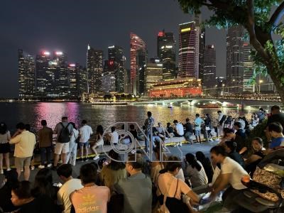近年來建構東協區域電網等議題受矚。圖為新加坡濱海灣一處夜景,燈火通明的商業大樓林立,點亮夜空。