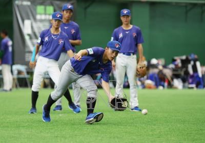 備戰9月在日本沖繩舉行的U18世界盃棒球賽,U18台灣培訓隊持續在台南集訓,1日上午受到雨勢影響在室內練習。圖為選手守備練習。