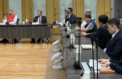 經濟部長郭智輝(後左)4日下午在高雄楠梓傳統產業創新加值中心出席產業座談會,並主持會議。