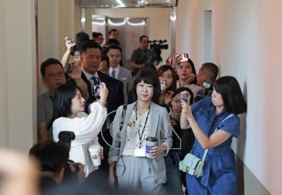 立法院外交國防委員會7日召開機密會議,邀請外交部、行政院經貿談判辦公室出示台美關稅談判相關文件。行政院經貿談判辦公室副總談判代表顏慧欣(前中)上午赴立法院,面對媒體提問皆未回應。