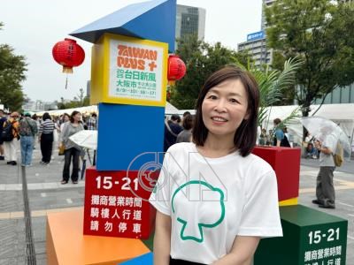 TAIWAN PLUS週末在大阪中之島公園熱鬧登場。文總副秘書長黃竫蕙表示,以往TAIWAN PLUS在海外通常只舉辦一週,這次在大阪連續兩週舉辦,且攤位規模創新高。文總結合民間力量與各部門資源一起參與活動,目標是把台灣文化傳遞出去,希望讓台灣走向全世界。