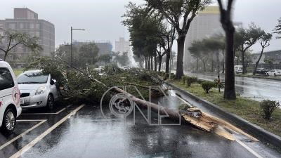 颱風楊柳13日快閃襲台、直撲台東,縣內不少路樹和電線桿不敵強風遭吹斷,有一棵路樹斷裂倒地,橫亙路中。