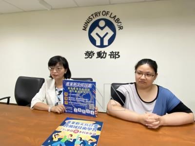 勞動部勞動力發展署訓練發展組長葉良琪(左)22日表示,為協助15歲至29歲離校青年就業,「產業新尖兵計畫」補助參訓青年最高新台幣10萬元訓練費用,還有每月8000元的學習獎勵金。