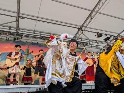 「島嶼之聲–廟埕前的謝神戲」集結9組台灣團隊演出,自26日起快閃大阪世博演出3天,新勝景掌中劇團27日於謝幕時帶著布袋戲偶「福祿壽三仙」向觀眾致意。