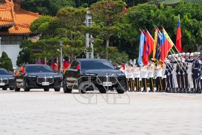 總統賴清德3日赴赴忠烈祠主持「中華民國114年秋祭忠烈殉職人員典禮」,圖為總統車隊離開忠烈祠。