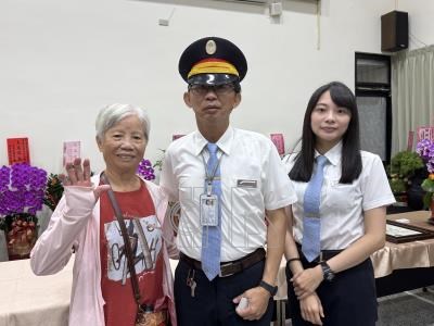 台鐵花蓮站新任站長鄭成忠(中)3日上任,女兒鄭妤涓(右)也在花蓮站擔任副站長,父女共同為家鄉服務。鄭成忠的母親(左)出席交接典禮。