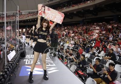 中職味全龍隊5日起連續3天在台北大巨蛋替老將林智勝舉辦引退系列賽「31CONIC 智勝一擊」,6日第2戰吸引滿場4萬人進場,啦啦隊在內野區帶動應援氣勢。