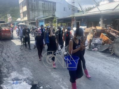 花蓮縣馬太鞍溪堰塞湖溢流重創光復鄉,災後復原路漫漫,27日為教師節連假首日,來自各地的「鏟子超人」志工們湧現,熱心協助災區復原。