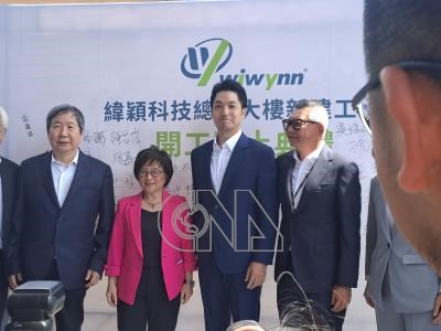 緯穎2日在台北市內湖區潭美段舉行總部大樓新建工程動土典禮,緯穎董事長洪麗寗(左2)、台北市長蔣萬安(左3)共同出席。