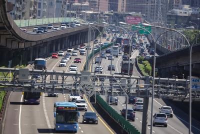 交通部公路局4日表示,預估中秋節連假首日部分路段將湧現出遊車潮,包括銜接國道快速公路的北部台65土城路段到國道3號路段等12路段易壅塞,建議出發前先查詢交通狀況。圖為國道1號汐止系統車流眾多。
