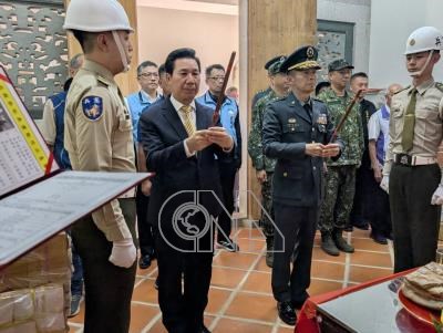 「金門縣秋祭古寧頭戰役陣公亡將士暨萬聖祠先靈祭典」25日舉行,金防部指揮官黃先任中將(右2)與金門縣長陳福海(左2)前往古寧頭萬聖祠向軍民牌位上香。