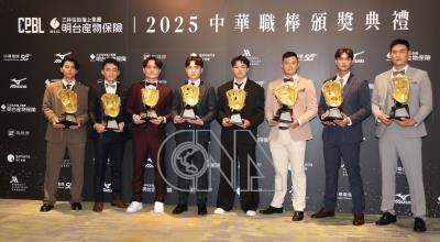 中華職棒5日在高雄萬豪酒店舉辦頒獎典禮,奪得金手套獎的外野手統一獅陳傑憲(左起)、味全龍郭天信,二壘手味全龍李凱威、游擊手中信兄弟江坤宇、三壘手台鋼雄鷹吳念庭、捕手味全龍蔣少宏、外野手中信兄弟岳政華與一壘手中信兄弟許基宏合影。