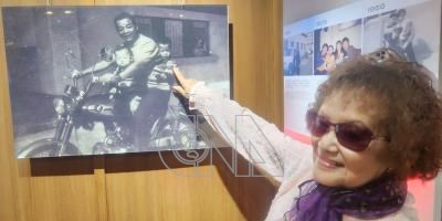 位於澎湖篤行十村內的「張雨生紀念館」8日重新開館,館內展示許多老照片,陳述已故歌手張雨生的生命故事。張雨生母親張福全(圖)也親自與家人到場參觀,在一幅5歲大的張雨生被爸爸騎車搭載出遊的照片前駐足。中央社 114年11月8日