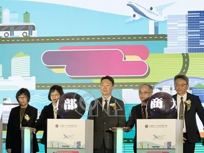 交通部長陳世凱(中)19日出席招商大會,今年以「交通招商多領域.打造榮景同躍進」為主題,規劃14個主題展示攤位共60案,預估釋出可供民間投資及向民間採購重大交通建設工程商機總金額達3339億元,首次突破3000億元大關。