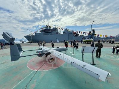 海軍高雄新濱營區展出銳鳶無人機與大武軍艦