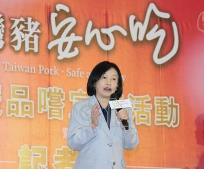 農業部次長杜文珍(圖)25日在台北出席台灣豬安心吃推廣品嚐宣導活動暨記者會,呼籲消費者安心選購國產豬肉,支持在地養豬產業。