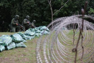 總統賴清德2日上午赴宜蘭利工體育館視導宜蘭縣旅步3營教育召集訓練,現場教召人員實施小部隊戰鬥訓練。