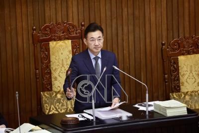 立法院2日三讀通過職業安全衛生法部分條文修正草案,將職場霸凌防治正式入法,圖為立法院副院長江啟臣敲槌通過法案。