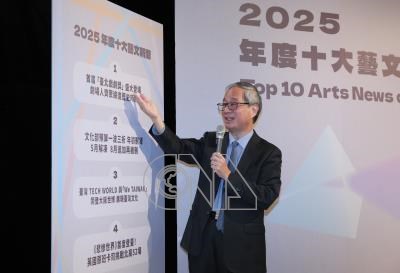 文化部長李遠(圖)16日下午在台北出席記者會,揭曉2025年度十大藝文新聞第1名。