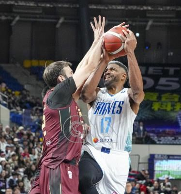台灣職籃P.LEAGUE+例行賽3日在台北和平籃球館進行,由台北富邦勇士交手台鋼獵鷹,勇士洋將辛特力(Michael Singletary)(右)貢獻12分,助隊順利取勝。