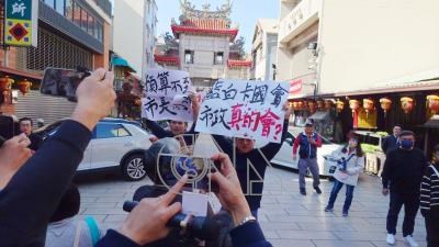 柯文哲陪張啓楷嘉市拜廟遇抗議(1)